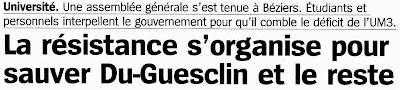 Fac Du-Guesclin de Béziers. C'est la LRU de Sarkozy qui met en difficulté les universités...